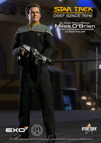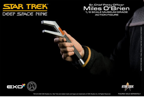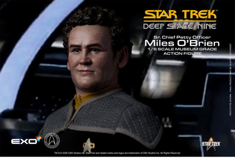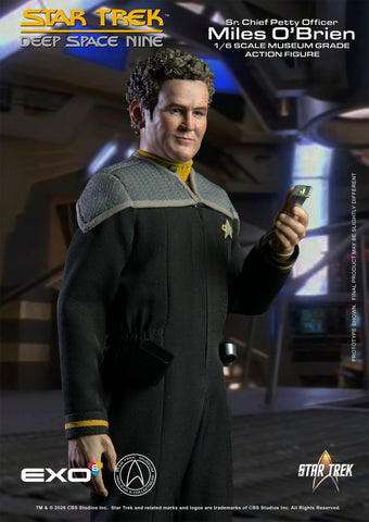 Exo-6 Star Trek: Deep Space Nine Sr. Chief Petty Officer Miles O’Brien 1:6 Scale Articulated Figure . This is a preorder and items will be shipped once received. Items are expected to arrive in Q4 2026. A non-refundable deposit of 30% will apply to this order if cancelled. Estimated release dates are given to us by the manufacturer and are subject to change. Our receipt of items from manufacturers may not be the same as wide release.