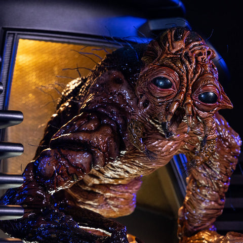 The inhuman appearance and asymmetrical anatomy of are accentuated by excellent paint work throughout, bringing to vivid life his half-formed insect appendages and carapace. Additionally, the statue is outfitted with wiry synthetic hairs adding additional depth and realism to this creature collectible.