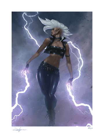 An original concept inspired by the character's appearance in '80s comics, this X-Men art is available to fans as an unframed giclée print or in a custom framed presentation. Each Storm: A New Look Fine Art Print features an authorized, automated artist signature and an embossed Sideshow Seal of Authenticity as part of the limited edition of 150 pieces. Pair it with the Storm Premium Format™ Figure by Sideshow - sold separately - for a powerful tribute to her age of anarchy.